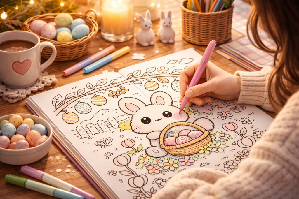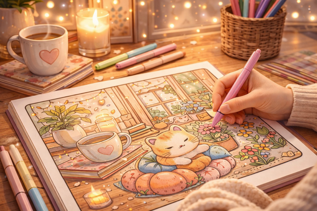 Le coloriage cosy ne se limite pas à l’illustration. L’environnement joue un rôle clé.